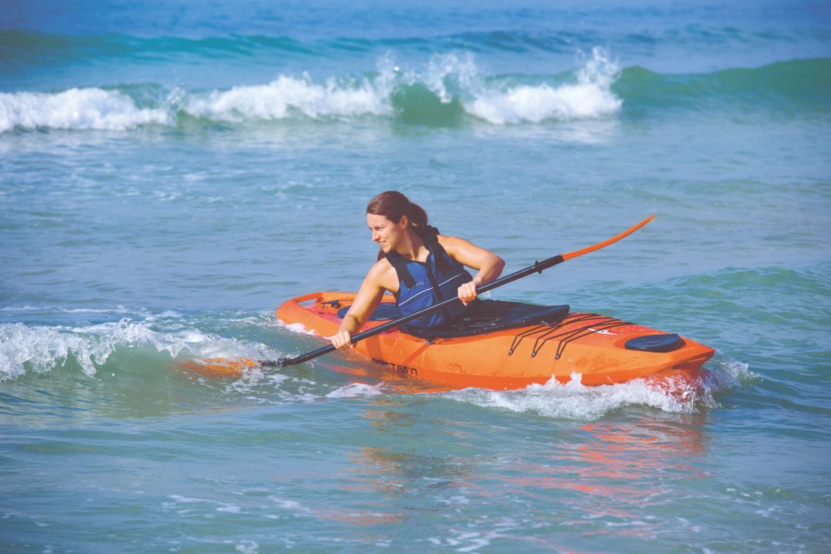 Le sit-in de randonnée by Point 65°N designé par Magnus de Brito. Idéal pour tenir la distance avec ses rangements et sa stabilité, vous pouvez partir équipé pour vos loisirs (pêche, photographie, farniente etc.) grâce à ses grands caissons étanches. À tribord toute ? Ce kayak est équipé d’un gouvernail contrôlé par des pédales !