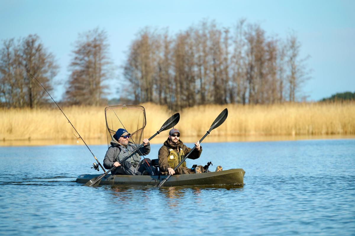 Conservez vos prises grâce à deux trappes de 24 cm placées à l'avant et à l'arrière du kayak. Sa grande zone de stockage avec filet accueillera facilement votre bagagerie étanche trouvée chez Toad ;) ainsi que leurres, filets et casier de pêche tandis que les deux portes-cannes intégrés et le porte-canne central satisferont les pêcheurs les plus exigeants !