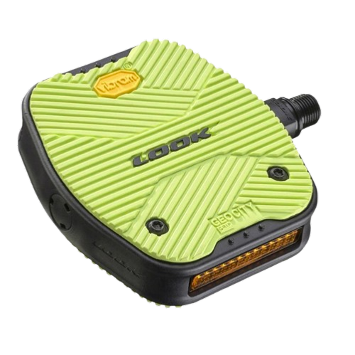 Que vous portiez de magnifiques chaussures de ville, des baskets, des mocassins, des bottines, des talons ou des claquettes, vous ne louperez plus jamais votre pédale au démarrage ! Avec leur large surface d’appui et leur grip en caoutchouc antidérapant vibram™, les pédales Geo City Grip de chez Look ne vous laisseront pas perdre le contrôle de votre vélo, quelque que soit le temps !