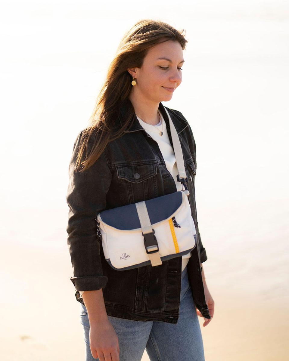 Fabriquée à partir de voiles techniques recyclées et de toile épaisse kaki imperméable 100 % coton tissée en France, avec des touches de voile de spinnaker orange, la sacoche SCOOTY allie robustesse, fonctionnalité et design moderne. La gamme Biky est conçue et prototypée à Lorient, en Bretagne, mettant en valeur un savoir-faire local et responsable.